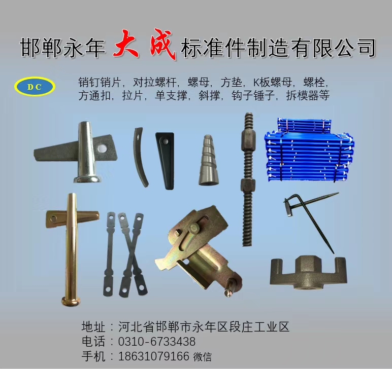 點(diǎn)擊數(shù):48692019-07-08 15:54:18 來源: 鋁模板銷釘_鋁模板配件_建筑扣件螺栓_扣件螺絲生產(chǎn)廠家-永年區(qū)大成標(biāo)準(zhǔn)件制造有限公司